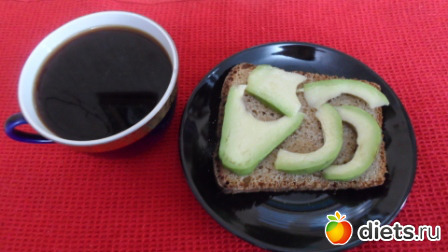 1. Завтрак: кофе, бутерброд с авокадо с лимонным соком и морской солью.