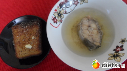 3. Ужин: уха из кеты, подсушенный хлеб с чесноком.