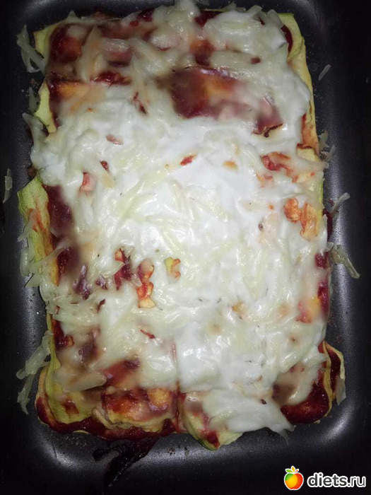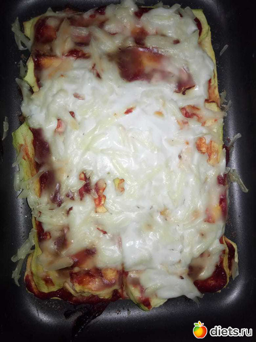 Обед: Запеченный кабачок с томатной пастой и греческим йогуртом без добавок, немного сыра