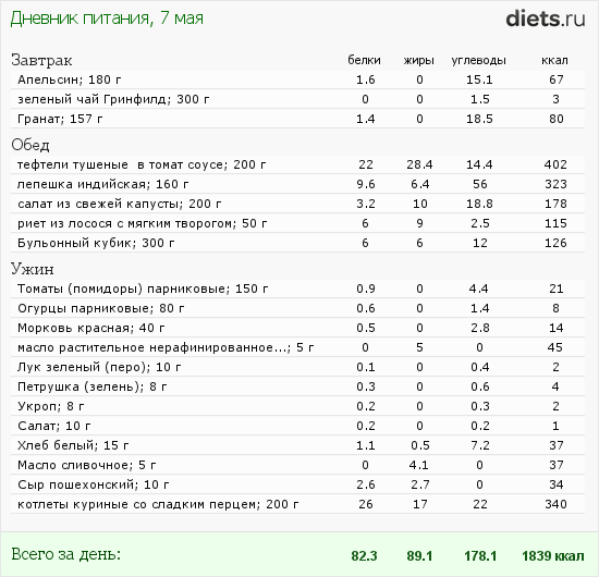 Вчера вроде без нарушений(не считая уменьшения в 2 раза порции от обеда)