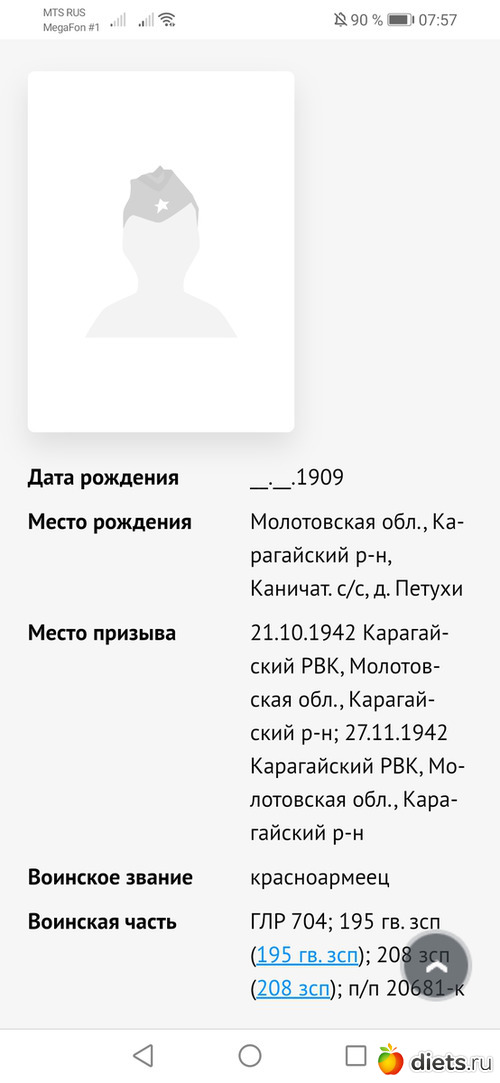 Да, и похоронка была утерена, когда моя бадушка с детками перебрась в Усть - Качку, Бабушка много рассказывала о трудных военных годах, как ей пришлось поднимать своих деток. Вот уже много лет их нет со мной, спросить о дедушке уже тоже не у кого.