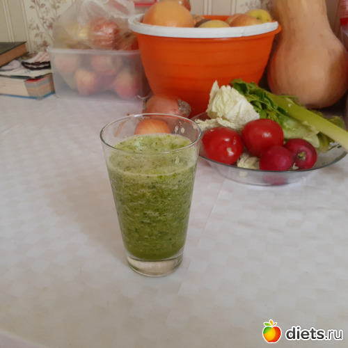 смузи: соль, вода, сельдерей, огурец, укроп, петрушка, листья салата
