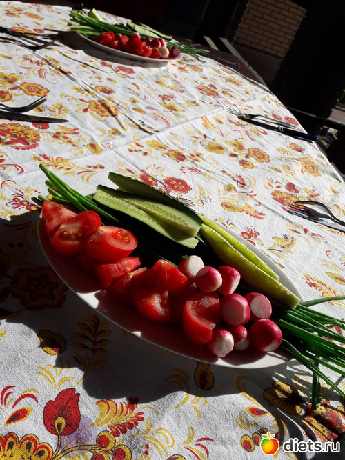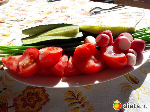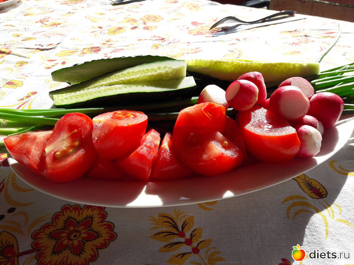 редисочка и лук были уже с огорода.