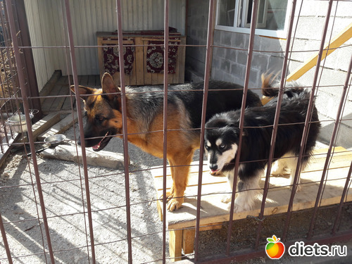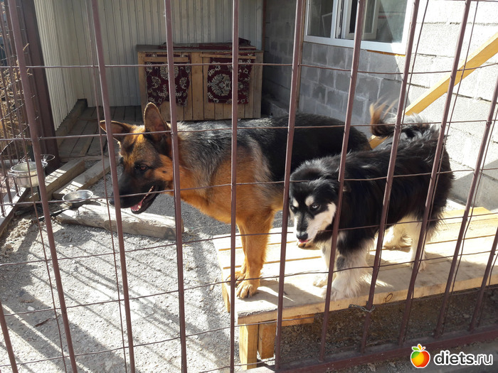 собаки, как всегда, когда гости, сидели в вольерах, такова их собачья селяви