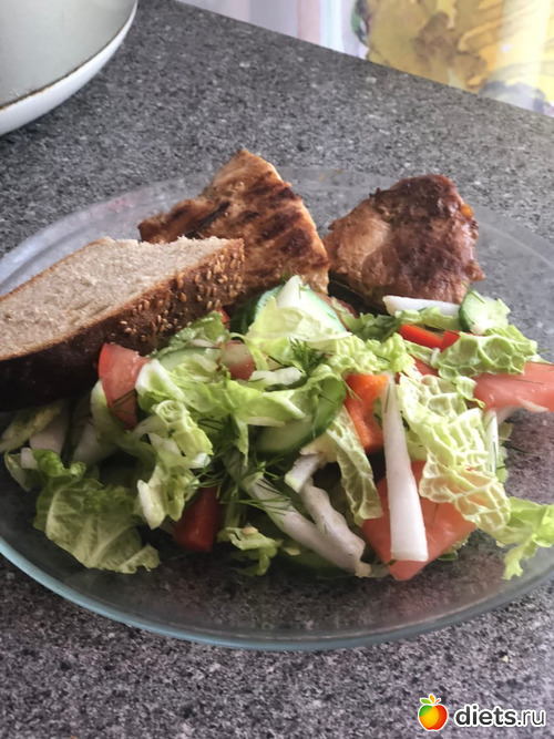 Сегодня белки, завтрак: банан+груша, обед: грудка куриная на гриле, маринованная в соевом соусе+салат помидор+огурец+болгарский перец+пекинская капуста+репчатый лук и капля пахучего подсолнечного масла, кусочек серого хлеба
