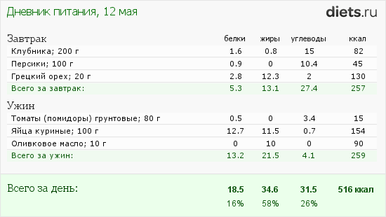 Как я уже сказала. вторник был совсем неактивный, по еде тоже. Завтракала поздно, обед совместила с ужином, поэтому и калорийность небольшая.