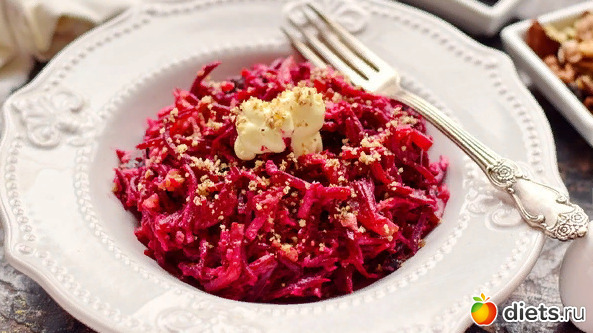 Запеченную или отварную свеклу натереть через крупную тёрку.