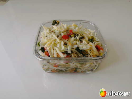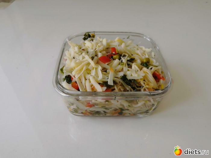 Взяла 100 грамм спагетти самых тонких (капеллини), подумала, ну разварятся немного, как раз на одну порцию. Ага, щаз, получился огромный тазик, который точно можно было поделить на 3 порции. Мой мозг шептал - съешь все немедленно, но где-то на задворках благоразумие давило на совесть - в итоге, поделила на 2 порции. Тем более к макаронам еще предполагались тушеные овощи. Свежих не стала добавлять (может зря?). Порция итоговая по моим меркам получилась не очень большая (фото будет ниже), но подумала, попробую съесть меньше, чем обычно.