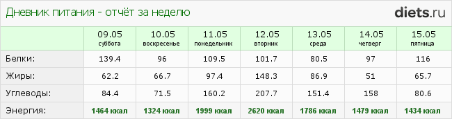 краткий отчет о результатах прошедшей недели, меню и выводы.