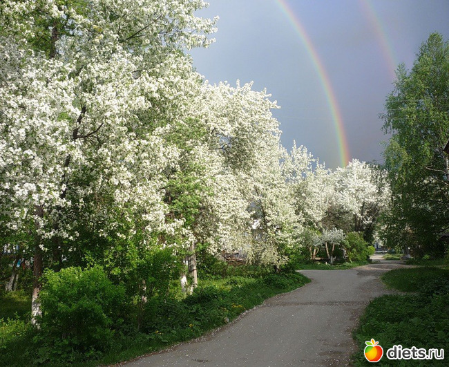В это время зеленеет дуб, зацветают вишни, яблони, груши, ранние сорта калины и шиповника