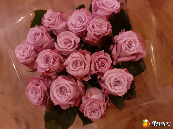 Проснулась - а на прикроватной тумбочке стоит прекрасный букет роз! Пока спала, любящий муж уже позаботился)