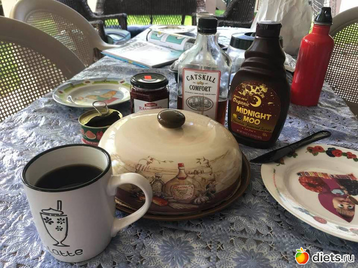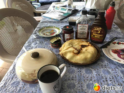 После магазина я пошла в подвал потренироваться. А потом испекла блинов, и мы сели на улице бранчеваться под аромат костра.