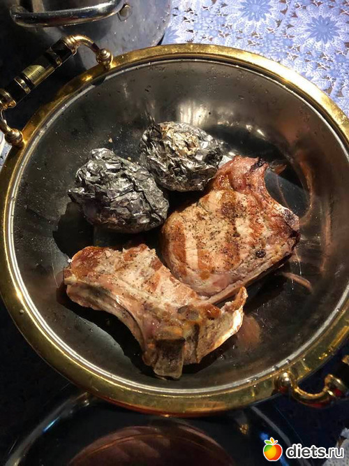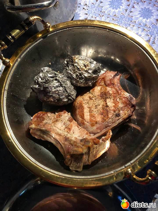 Вечером жарили бургеры и стейки (на гриле), запекли картошку. Дети жарили зефир