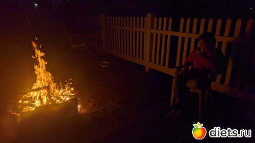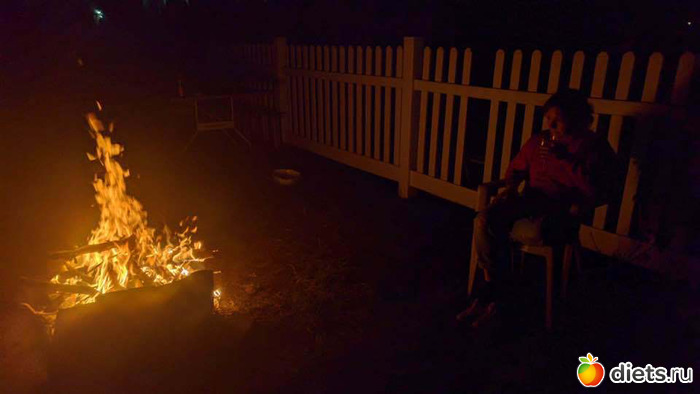 Кстати, вечером зашел полицейский - кто-то из соседей нажаловался на запах. Но он проверил, что горят только палки и сказал, что все хорошо. Так что такой костер можно