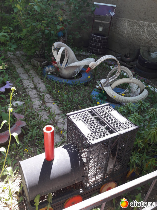 Сейчас многие делают во дворах из старых покрышек и пластиковых бутылок такие поделки))) Молодцы))) Тоже своего рода утилизация!!!