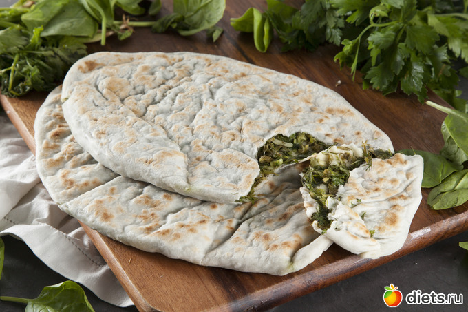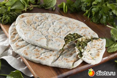 И лепешка с зеленью прикольная! Очень даже в тему диеты