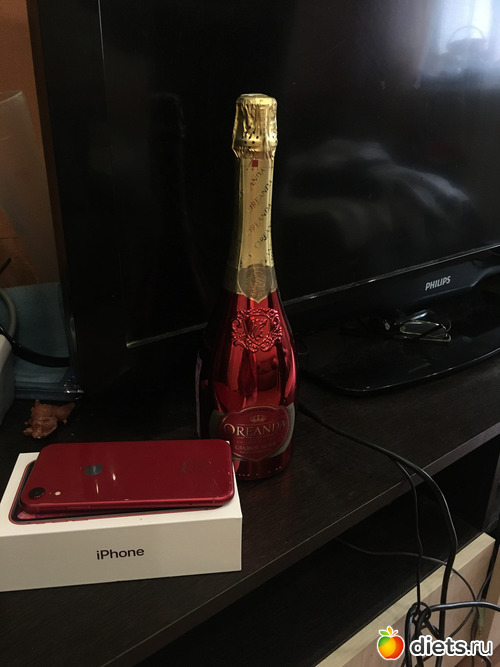 Подарили новый телефон. Красный. Чехол к нему И шампанское под цвет