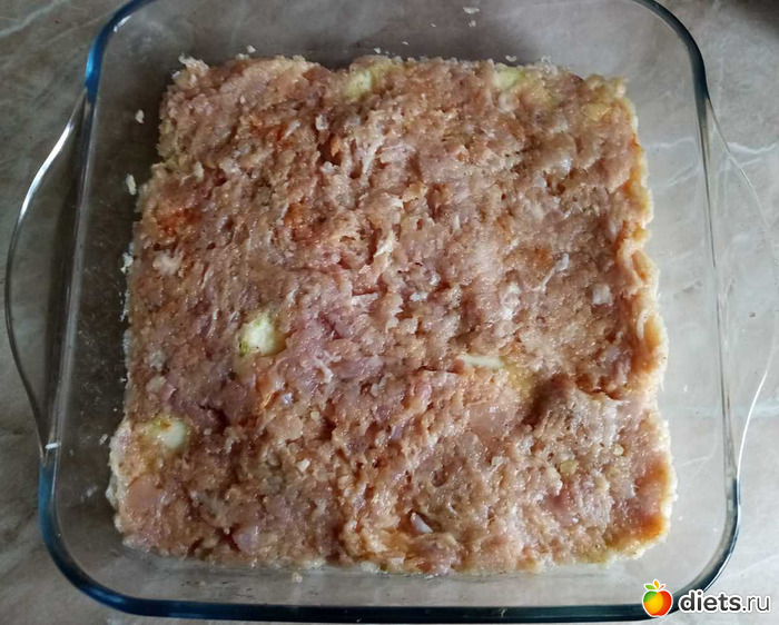 Еще я готовила на маленькую емкость и у меня получилось в два слоя, если емкость будет побольше, то фарш можно в один слой сделать