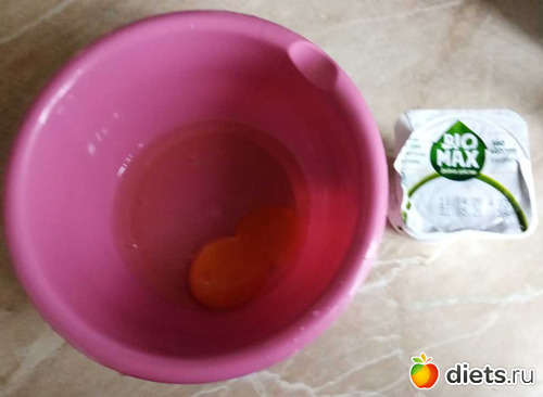 Затем приготовила заливку взбив 1 яйцо со стаканчиком натурального йогурта (можно заменить на сметану), выдавила в заливку 2 зубчика чеснока, добавила соль и перец по вкусу