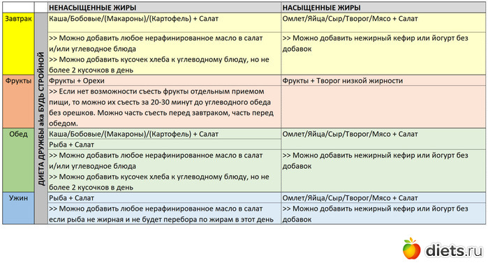 Здесь применяю принцип разделения употребления продуктов с содержанием насыщеных и ненасыщеных жиров.