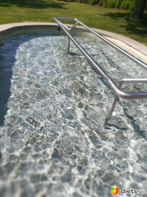 Вот сегодня открыли общественные ножные ванны Кнайпа.Вода природная ,из-под земли ,оч.холодная.В ней надо пройти минимум столько сколько тебе лет.Воды до колено,специально платье надела чтоб джинсы не закатывать.Ведешь собаку домой,она в ручье окунается,ну а два круга делаю —очень освежает