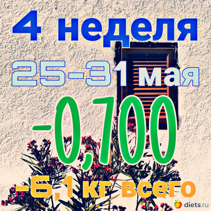 СБРОСИЛА -0,7 кг (с 70,3 до 69,6). По плану иметь примерно 73 кг, но я пока план опережаю.