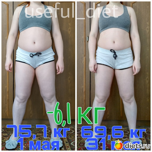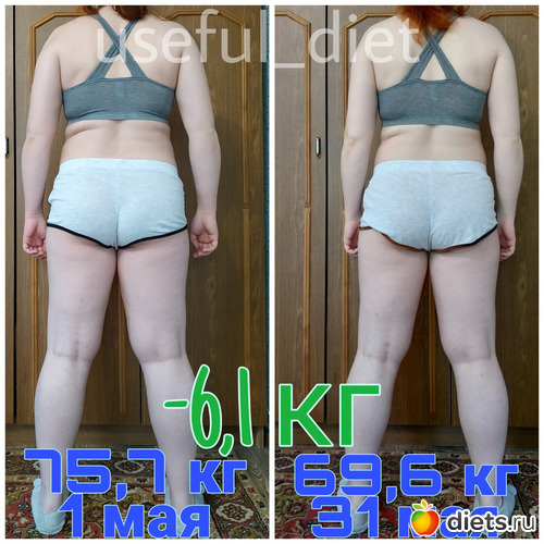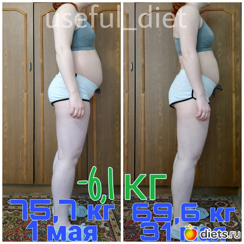 69,6 кг (перешла из категории «избыточная масса тела» в «легкое превышение веса»).