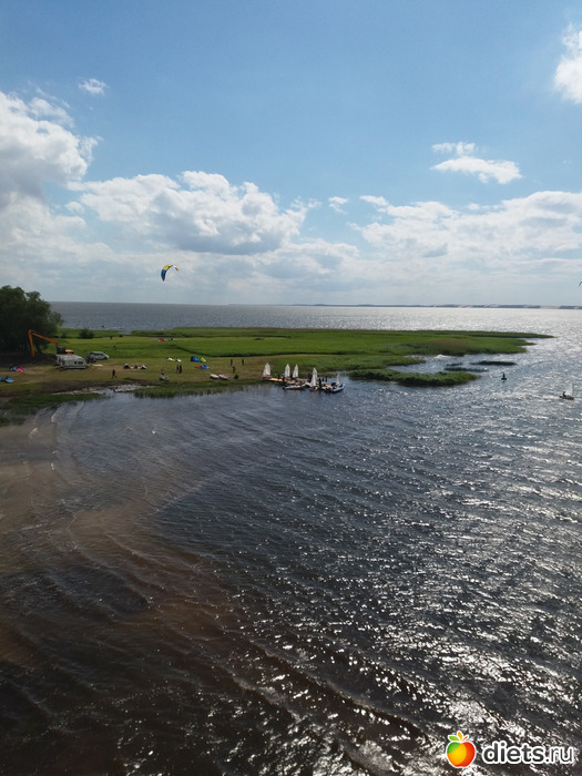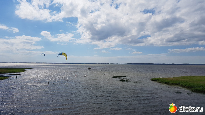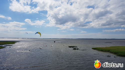 Древерна находится по другую сторону Куршского залива, где мы были вчера, и с этого берега как раз видна Нида. Соотв отсюда можно поплавать до Куршкой косы или просто поплавать, в кемпинге так же базируется школа кайтсерфинга.