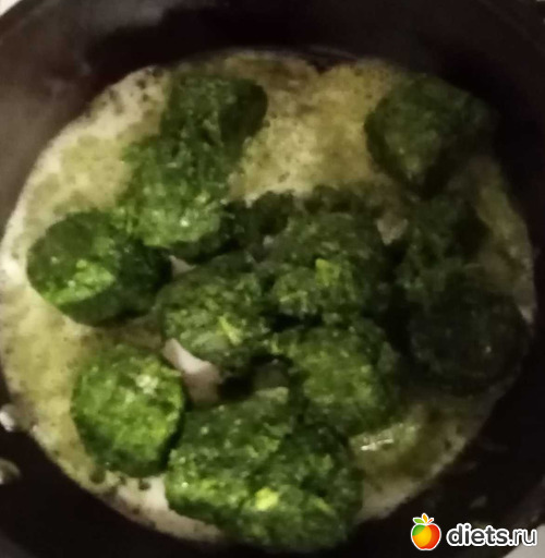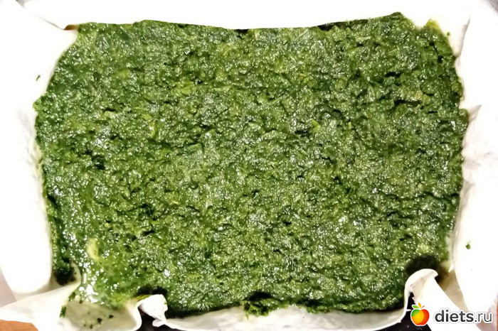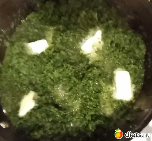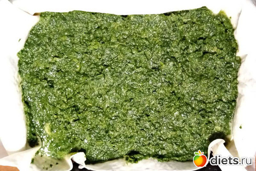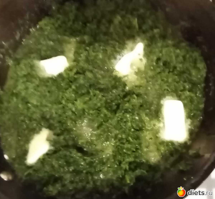 3 слой - шпинат тушеный (у меня на сливочном масле грамм 30-50) подсоленный + специи по вкусу