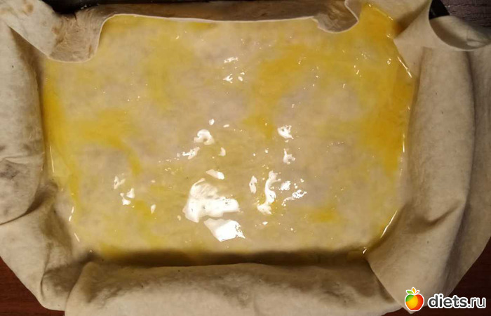Нижний слой будет с фаршем, и его надо укрепить, сделать двойным, чтоб выдержал