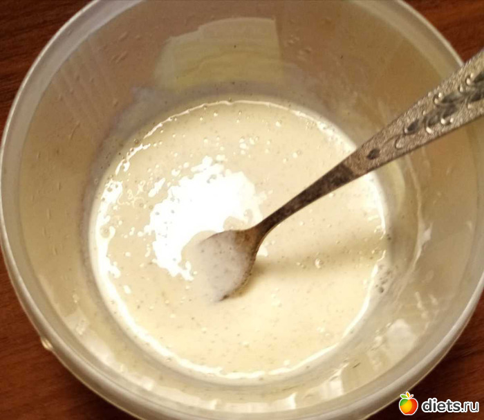 1 яйцо взбила с натуральным йогуртом (можно со сливками, сметаной или молоком) + специи по вкусу