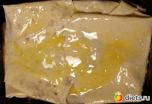 Затем по тому же принципу свернула конвертом и также сверху смазала яйцом