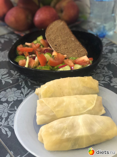 Утром взвесилась. Отвес за вчерашний день на кашах составил -0,6 кг итого вес составляет 91,6 кг))) очень хочу поскорее увидеть восьмерочку ))) сегодня белковый, завтрак: как обычно фруктовый салатик яблоко+банан, обед: голубцы на пару+ овощной салат + кусок черного хлеба
