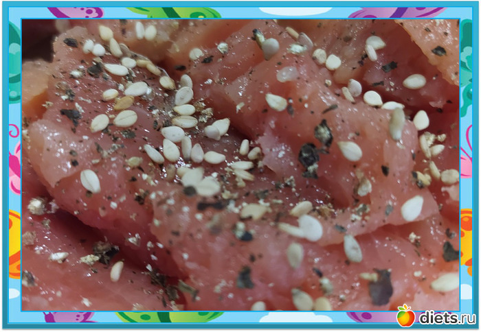 Через 3 дня я рыбку почистила, посыпала еще черным перцем и кунжутом.