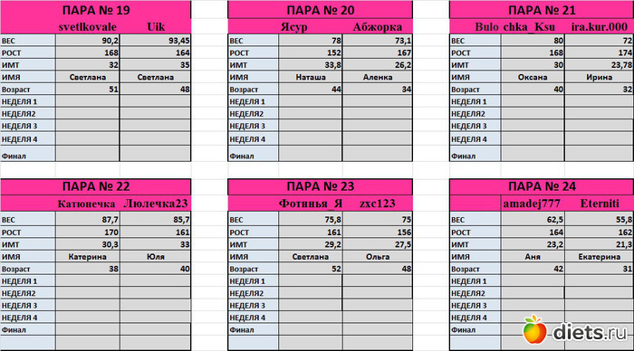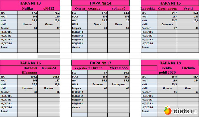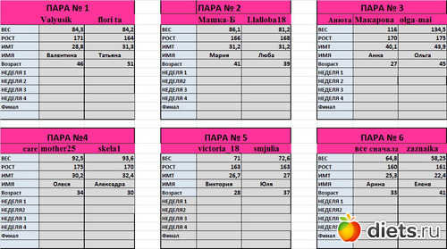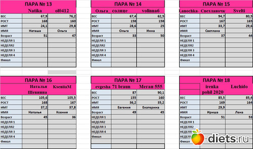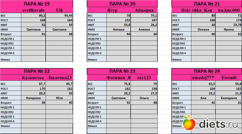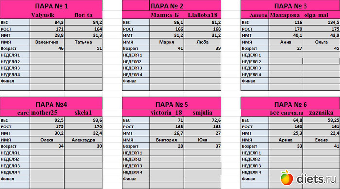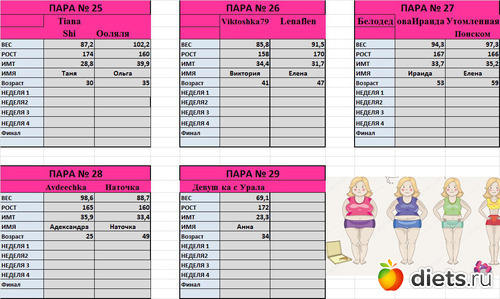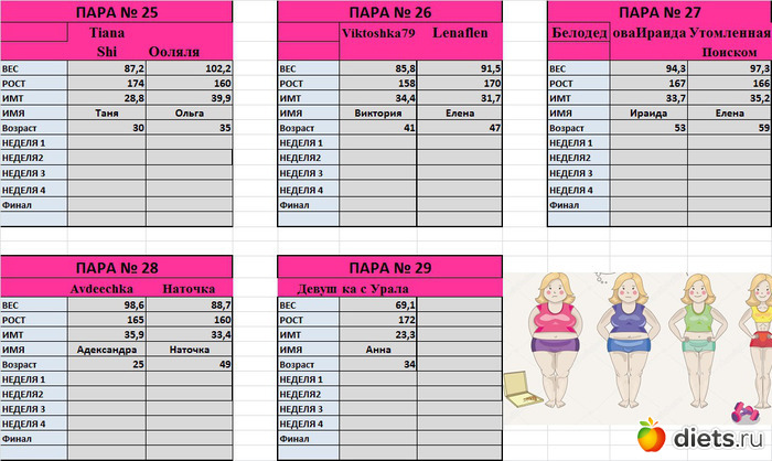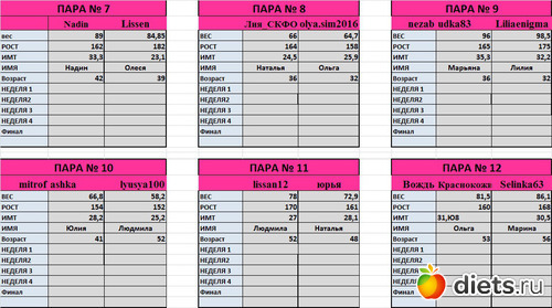 Надя, скажите какой день у Вас по свободнее, чтобы заполнять таблички, а мы под Вас подстроимся. Нас тут почти 60 человек и Вы единственная кто согласился возиться с похудением 59-ти чужих тёток. Спасибо огромное, что тратите на нас своё время.