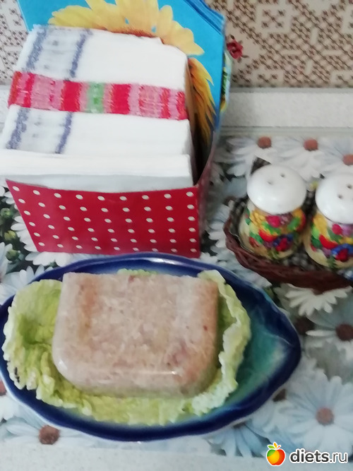 ужин : студень из постной свенины с желатином и листья китайской капусты