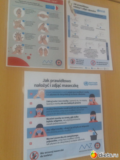 В Польше всё еще надо носить маски в супермаркетах. Перед поездкой читали на официальной страничке, что и в общепитах нужно, но не видели там никого в масках, сами тоже не одевали. Сажают посетителей за каждый второй столик, на дезинфицированные ставят табличку, что вот мол это место обработано. Конечно везде висят санитайзеры. В одном из ТЦ не работали примерочные, в другом работали.