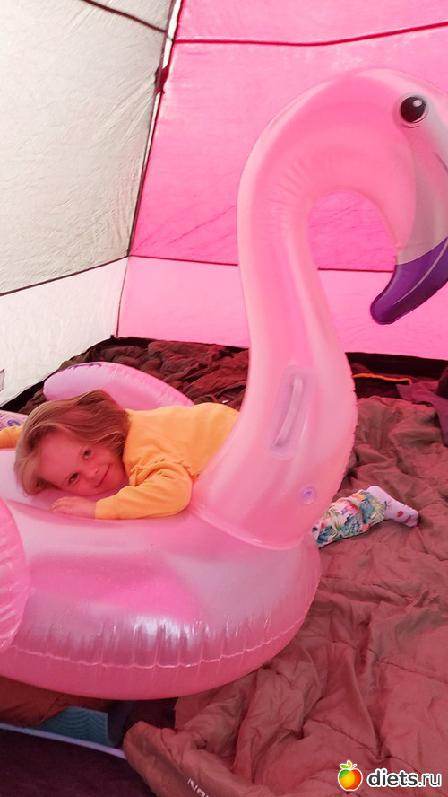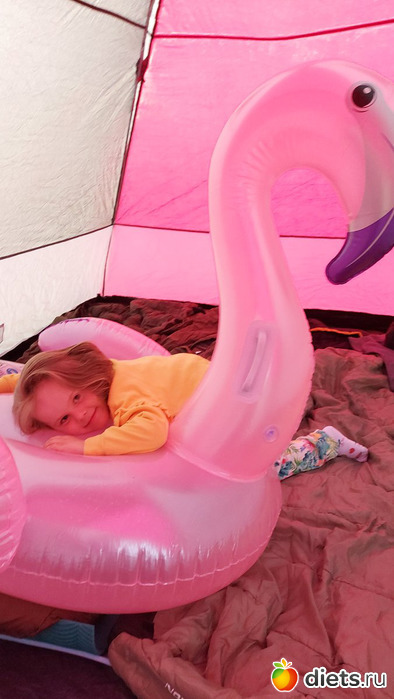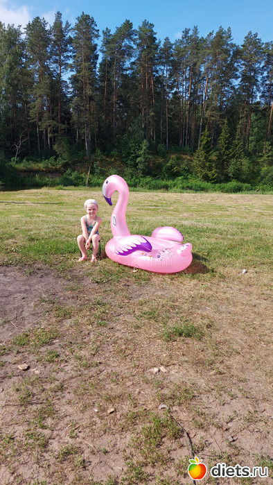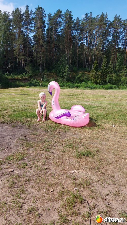 Дочке накануне купили такого надувного фламинго - встречали мы подобных в водах Августова, и себе захотели