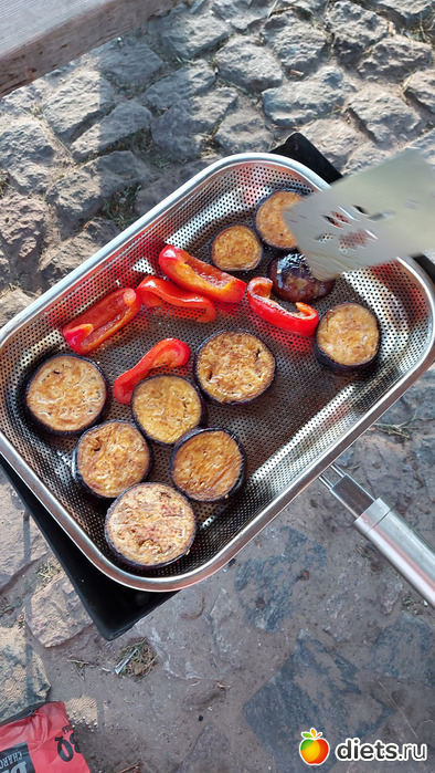 ужин: курогрудь, баклажаны, болгарский перец гриль, помидор, огурец
