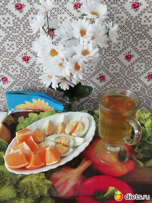 Завтрак : 2 яйца ву крутую и 1\2 апельсина
