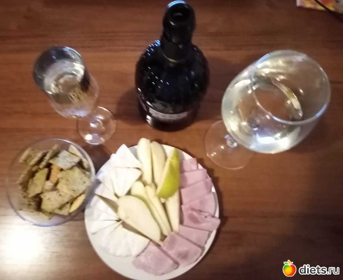 шампанское брют, сыр камамбер, груша, ветчина и крекеры типа пп