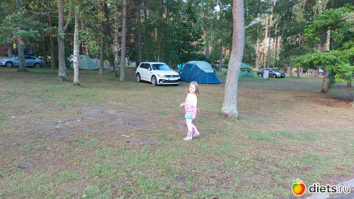 Ночевали в палатке в кемпинге, в который ездим каждый год уже много лет подряд. Кемпинг отличный, можно в принципе только в нем все дни отдыхать, там есть всё, что надо семье для отдыха: кухня, души, туалеты, електричество, вай-фай, детские площадки, кафешка (хорошая). Сам кемпинг находится на берегу моря, спустился по тропинке и купайся, пляж отличный. К территории кемпинга прилегает музей по типу скансена, от кемпинга так же идет поезд-узкоколейка, на котором можно покататься по кольцевому маршруту, а можно съездить до детской площадки.