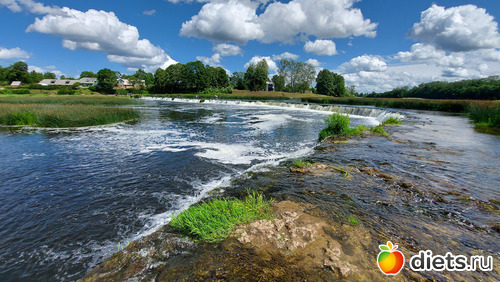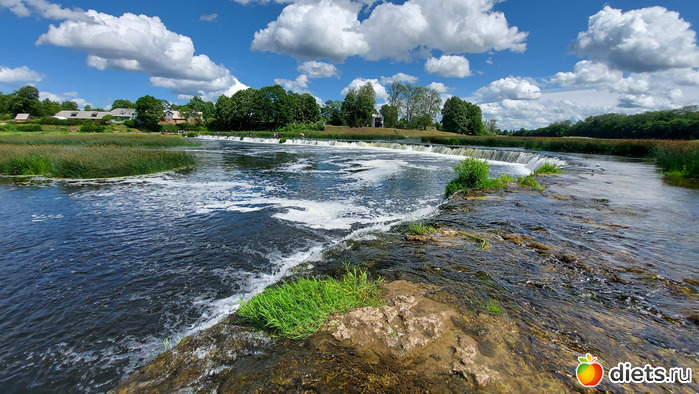 Ну и местная достопримечательность - самый широкий водопад Европы Вентас-румба. Ширина водопада в зависимости от сезона варьируется от 110 м до 279 м, весь его можно перейти ногами. А высота варьируется от 1,6 до 2,2 м.