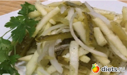 PS: берите кислые яблоки, чтобы подчеркнуть вкус маринованного лука.