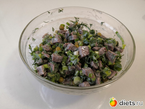 Ужин: Салат из отварной говядины, горошка и зеленого лука