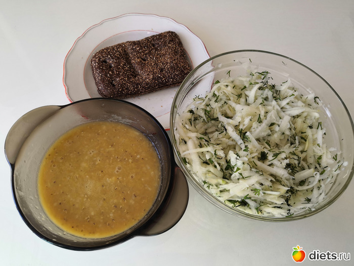 Обед: Суп-пюре из красной чечевицы, салат из кольраби, ржаные хлебцы со сливочным маслом