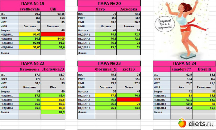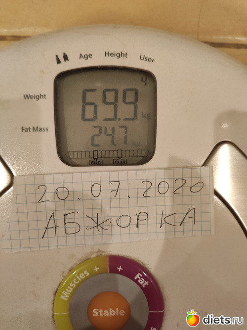 69.9 кг (-1.1 за неделю, -3.2 всего)