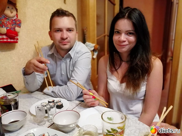 Подбить она меня подбила, но каждый день каялась в маленьких нарушениях. Я с опасением за этим наблюдала, и, конечно, суши - это УДАР!