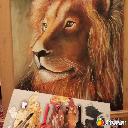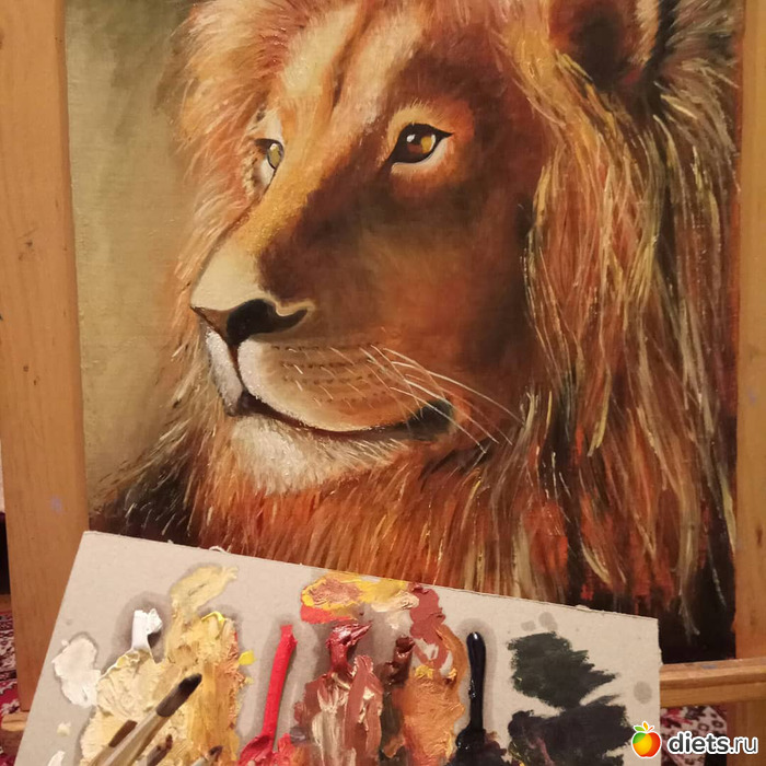 А это лев в подарок старшей сестре. Маслом по мастер-класс