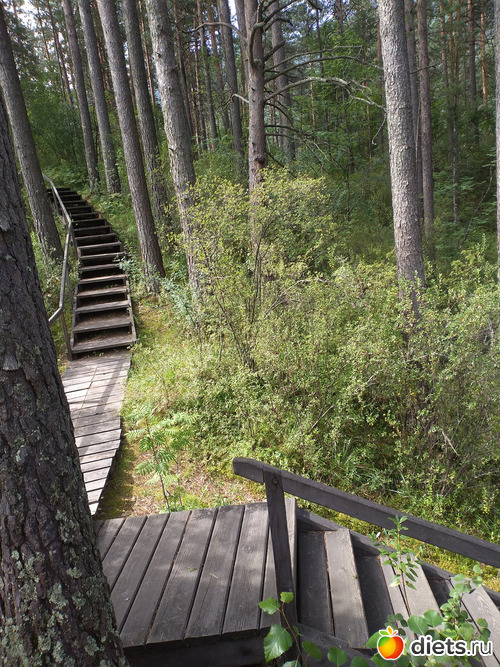 прогулялись сначала по тропе здоровья там куча лестниц и тропа укрыта сухой хвоёй смешанной с сосновой корой, как же приятно по ней ступать как *подушка*. Беседка над р. Камлак высоко)))